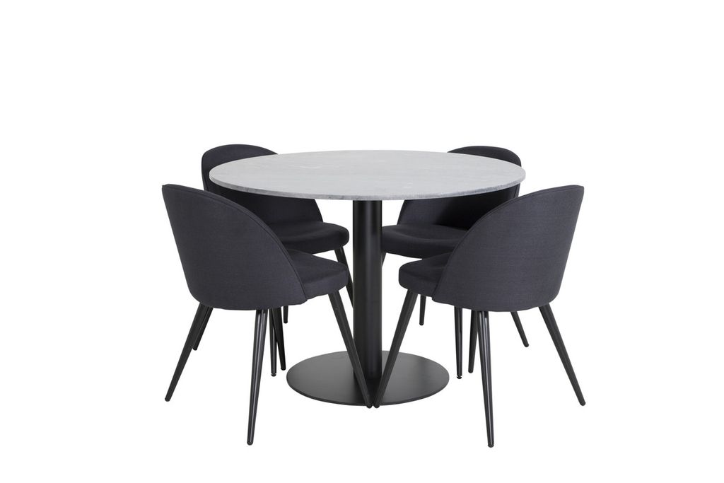 Venture Home Velvet & Estelle 4 st Matstolar Svart + Runt Matbord ⌀106 Mörkgrå