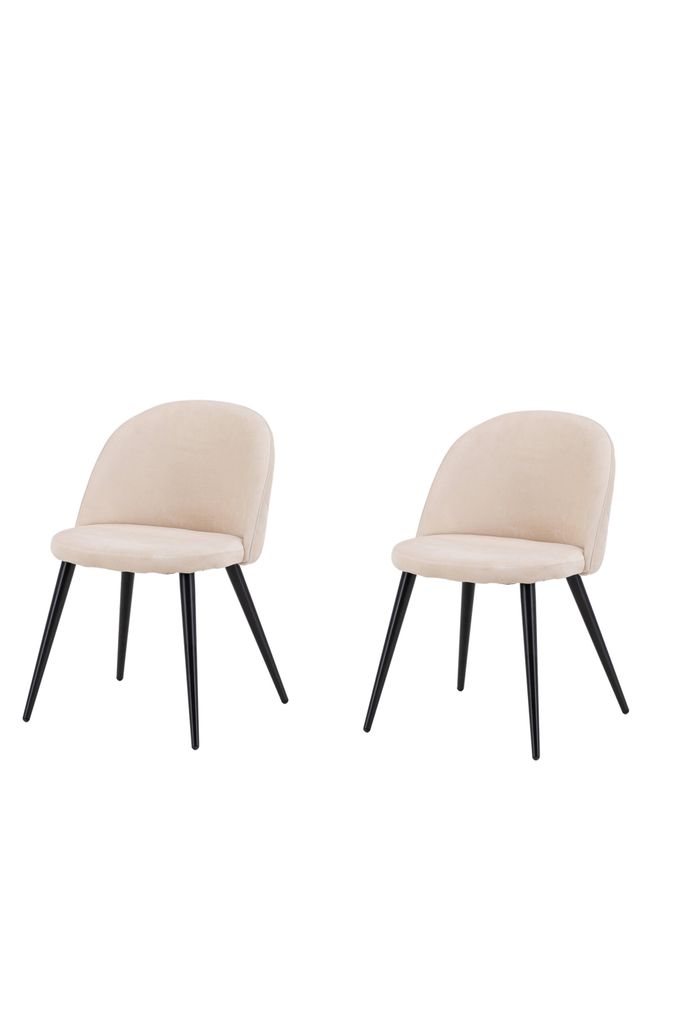 Lyxiga Velvet matstolar i beige sammet och polyesterlinne med elegant rutmönster och stadiga svarta ben i järn.