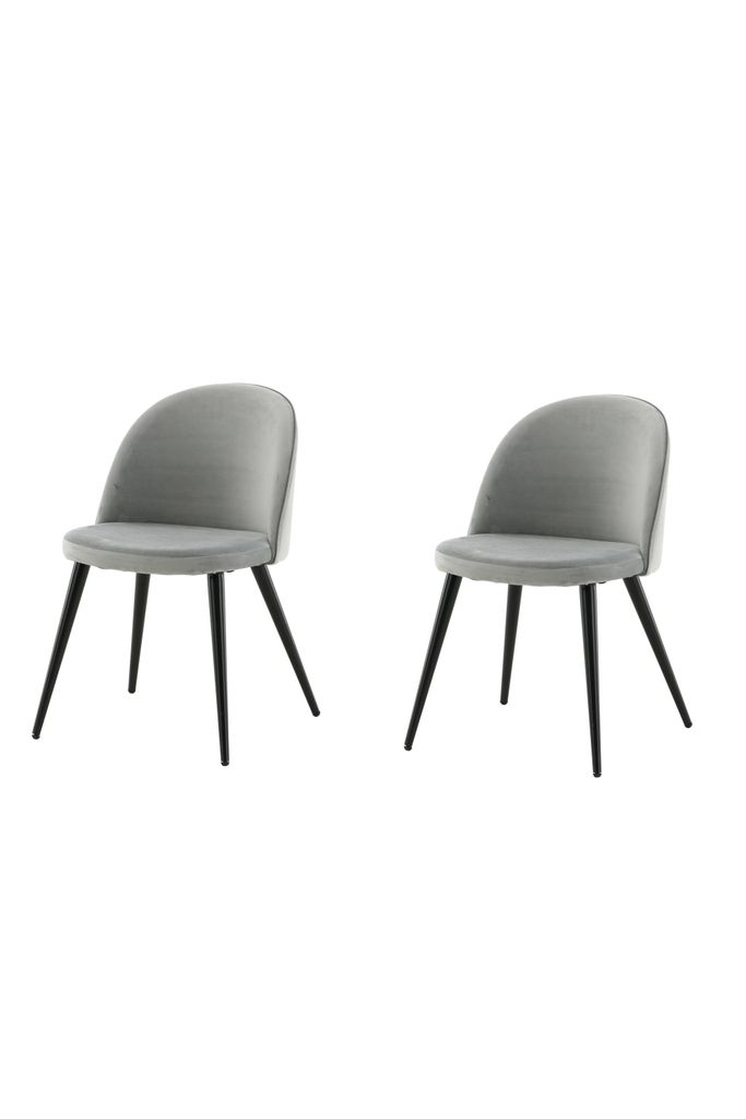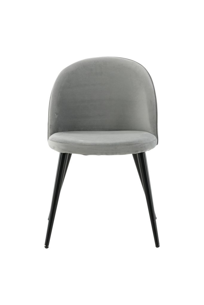 Elegant, grå matstol i sammet med svart metallben. Perfekt kombination av stil och komfort.