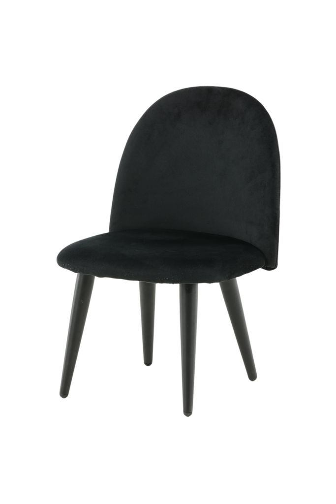 Elegant barnstol i svart sammet med vitlackerade metallben. Perfekt för stilfulla och bekväma matstunder.