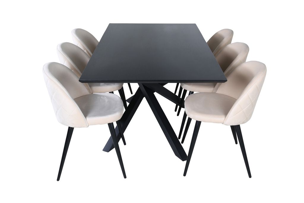 Venture Home Velvet & Piazza 6 st Matstolar Beige + Rektangulärt Matbord 180 x 90 Svart