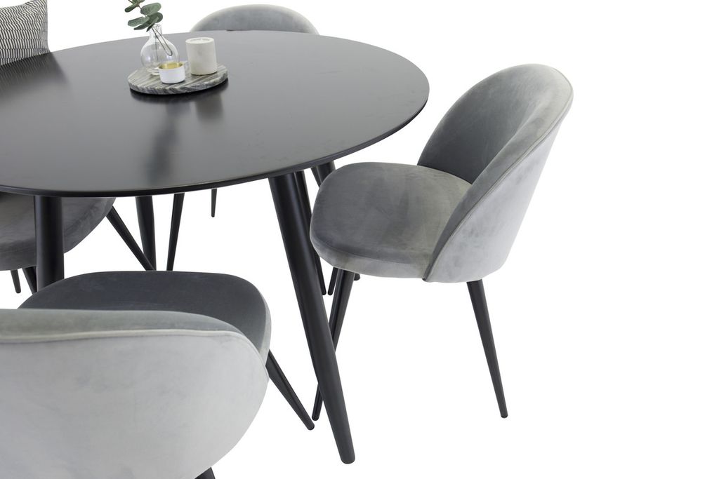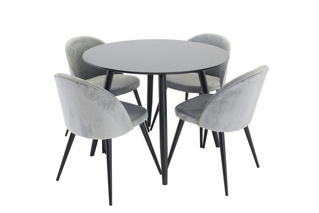 Venture Home Velvet & Plaza 4 st Matstolar Grå + Runt Matbord ⌀100 Svart