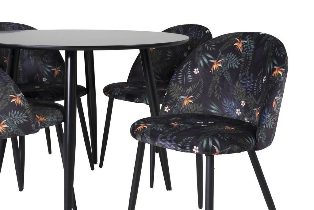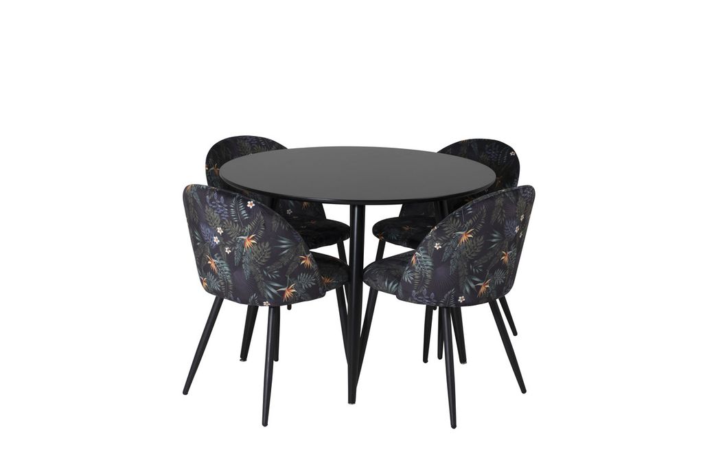 Venture Home Velvet & Plaza 4 st Matstolar Svart + Runt Matbord ⌀100 Svart