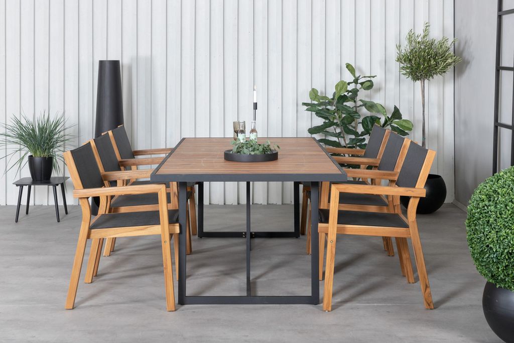 Venture Home Venice & Khung Matstolar 6-pack Natur + Rektangulärt Matbord 200 x 100 Natur