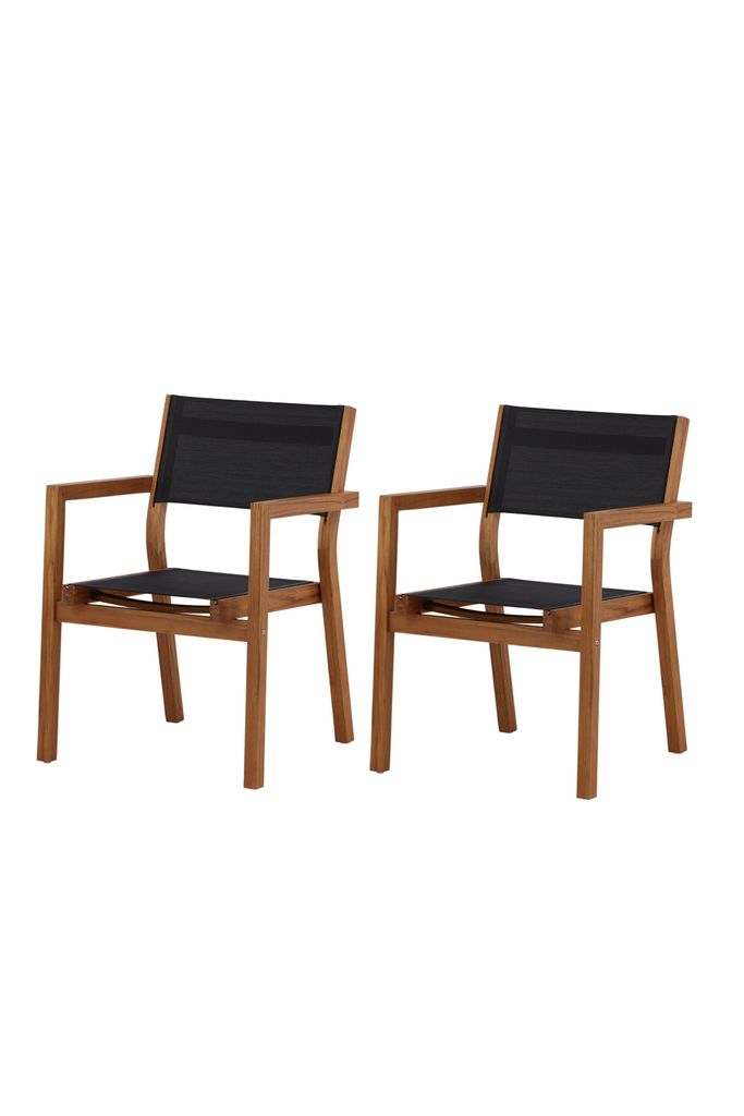 Färger och Material: Stolens ram är tillverkad av robust acaciaträ i en naturlig nyans, medan sits och ryggstöd är av svart textilene, ett material som både är vattenresistent och UV-behandlat för att motstå solens blekning.
