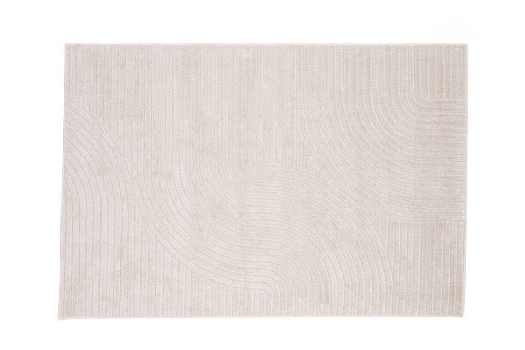 Benvit matta med linjerat mönster som ger liv och rörelse. En modern inredningsdetalj som är lättskött.