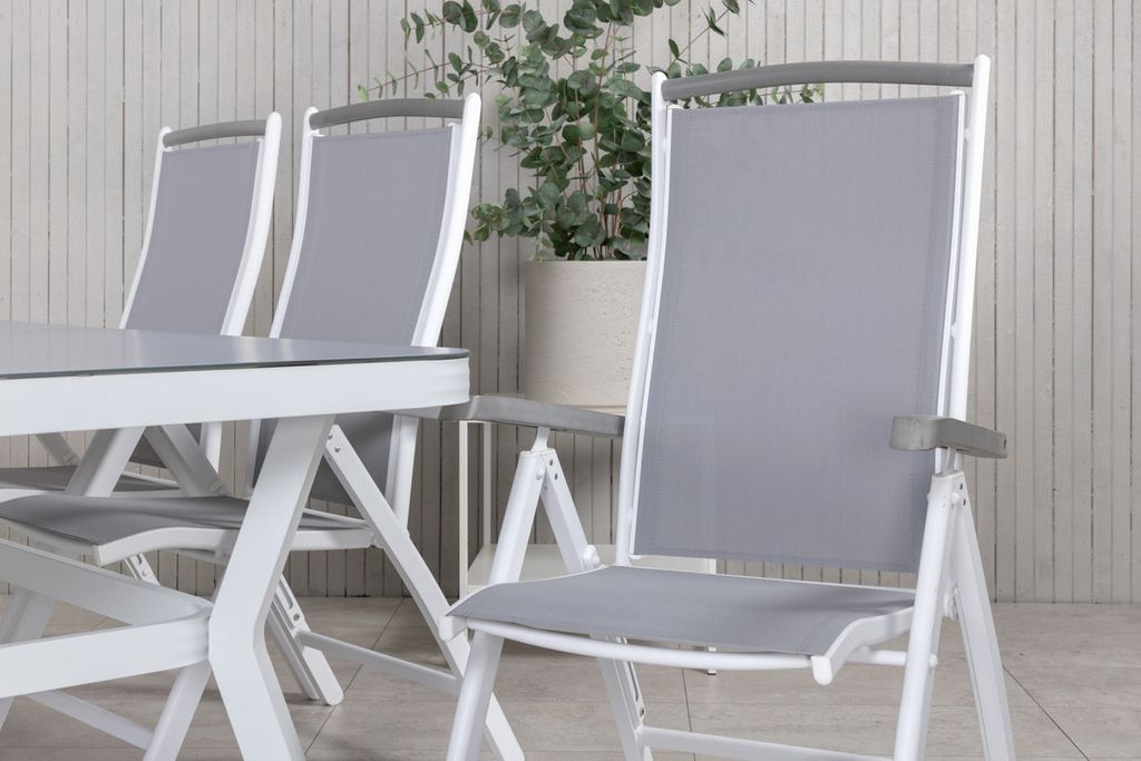 Venture Home Virya & Albany Rektangulärt Matbord 200 x 100 Vit + 6 st Positionsstolar Vit