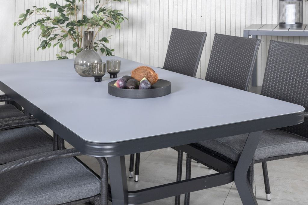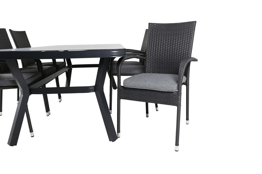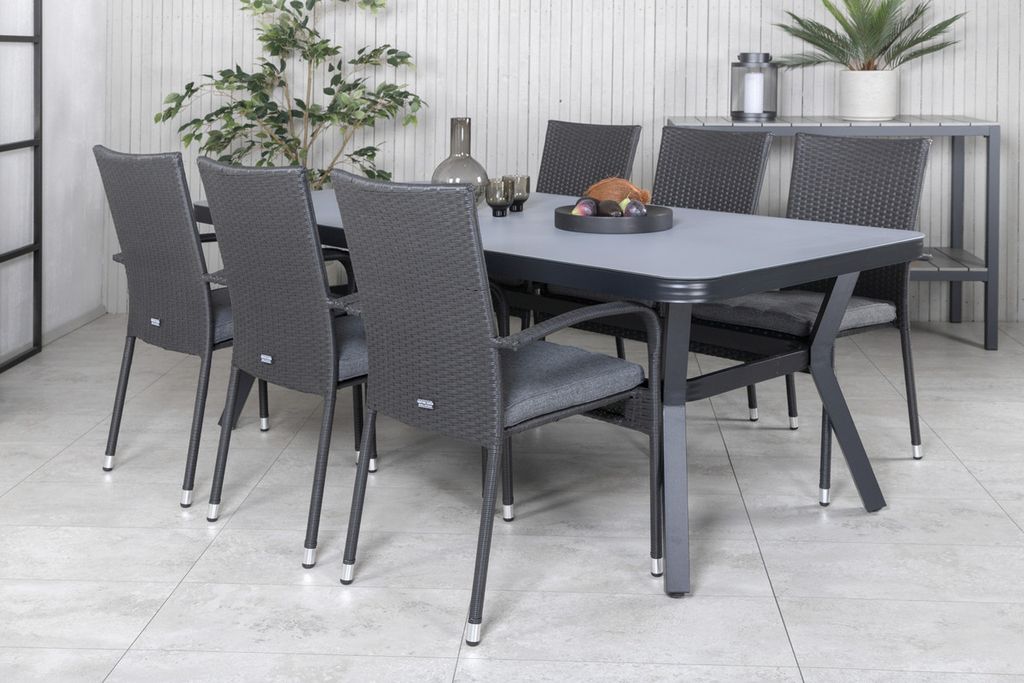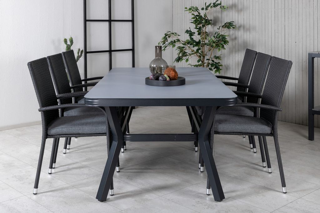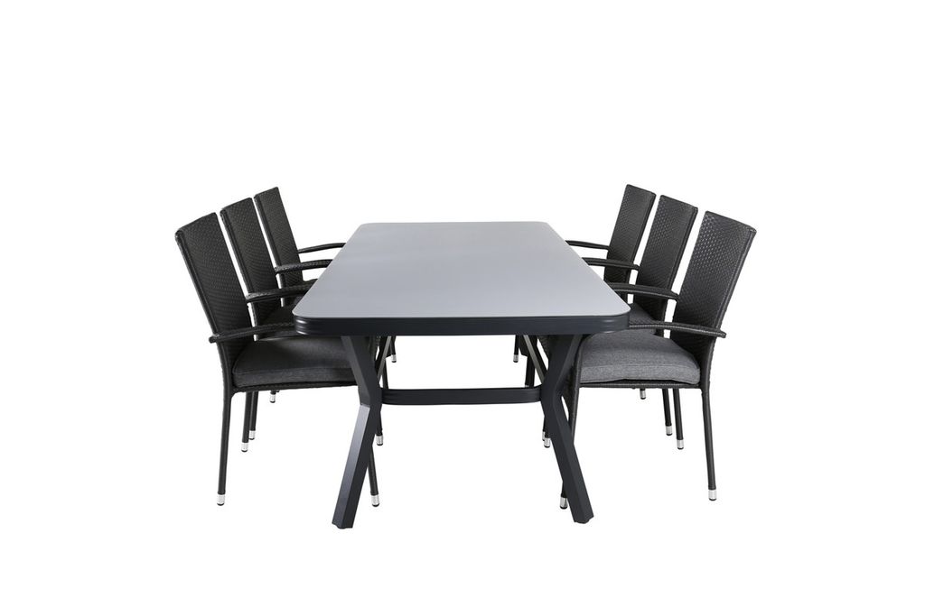 Venture Home Virya & Anna Rektangulärt Matbord 200 x 100 Svart + 6 st Matstolar Svart