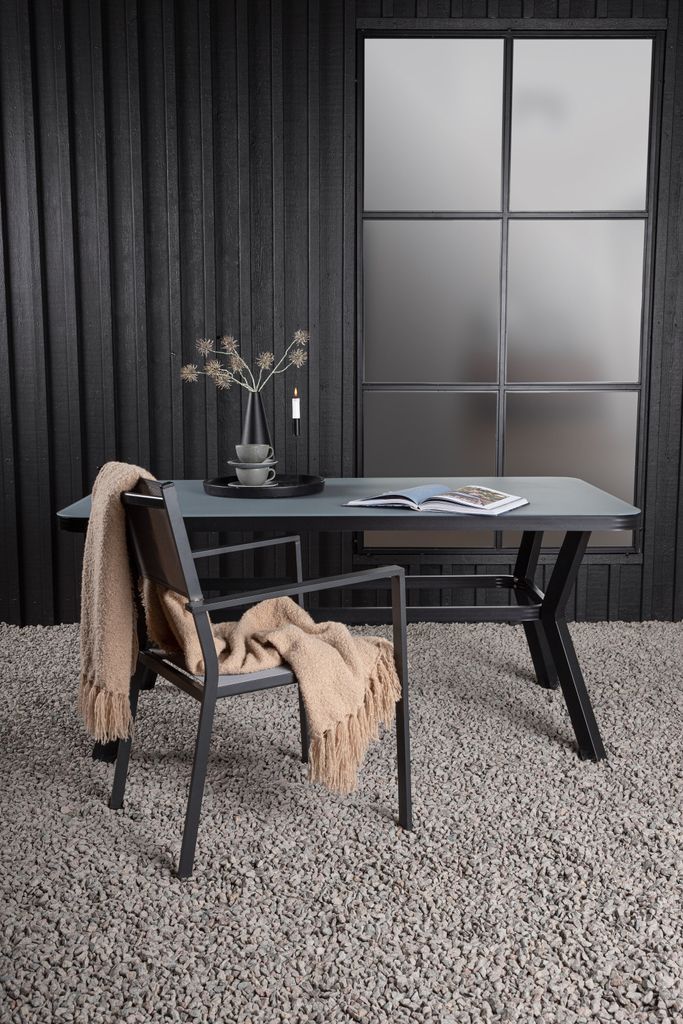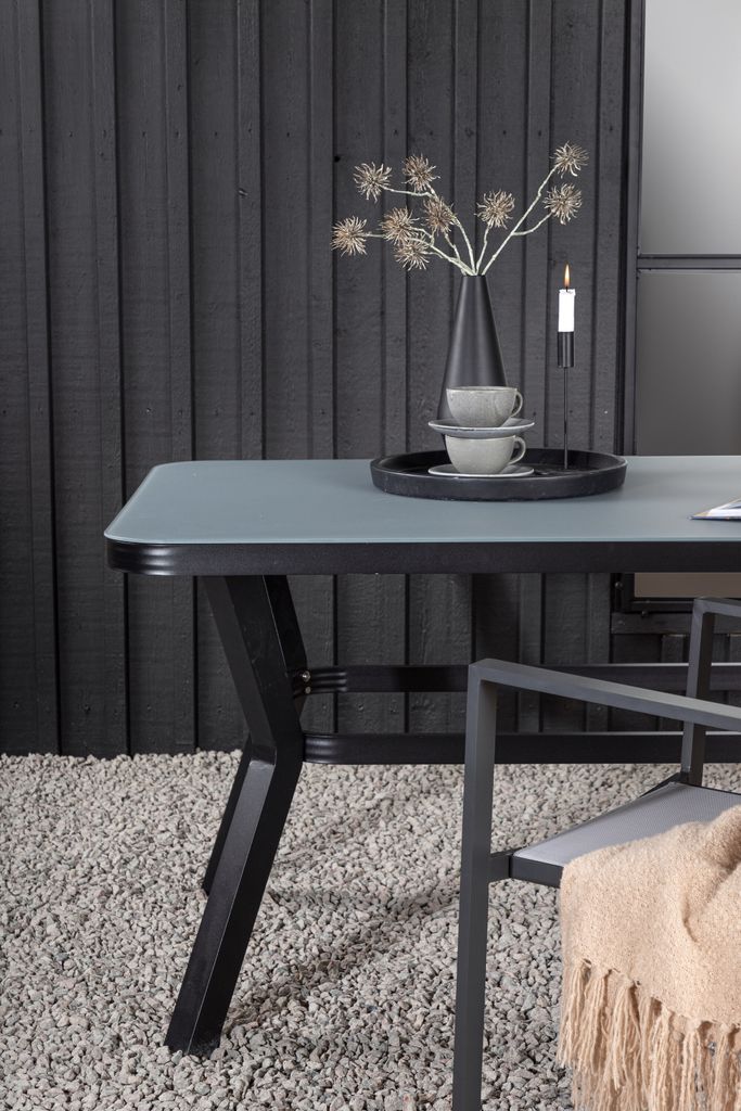 Venture Home Virya Matbord är en stilfull och funktionell möbel som förhöjer din uteplats. Med en bordsskiva av matt glas och svarta aluminiumben erbjuder bordet en modern och elegant design som passar perfekt på både altanen och i trädgården.