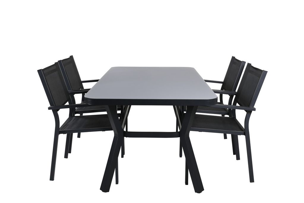 Venture Home Virya & Padova Rektangulärt Matbord 160 x 90 Svart + 4 st Reclinerstolar Svart