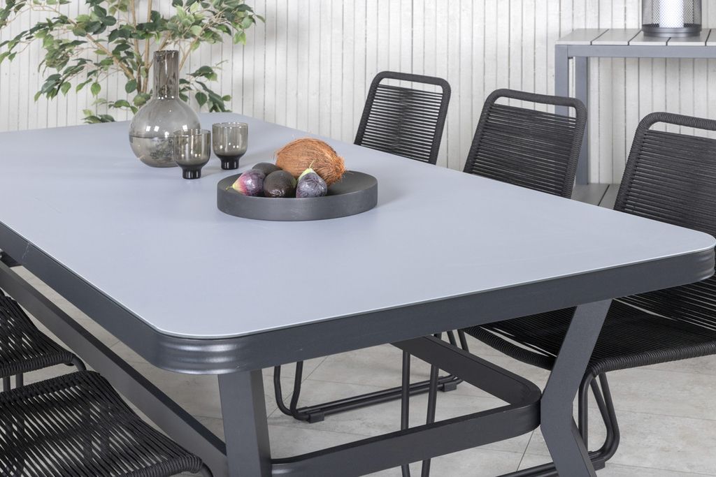 Att köpa en färdigkomponerad matgrupp är både trendsäkert och praktiskt! Här kombinerar vi vårt matbord Virya tillsammans med våra sittvänliga matstolar Lindos. Låt uteplatsen präglas av din nya iögonfallande matgrupp.