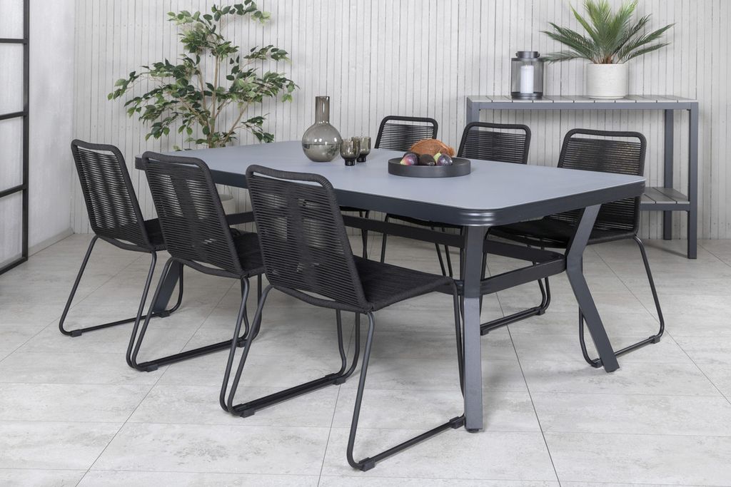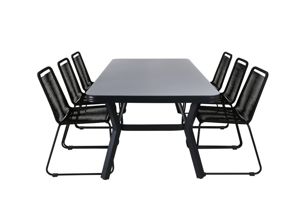 Venture Home Virya & Lindos Rektangulärt Matbord 200 x 100 Svart + 6 st Matstolar Svart