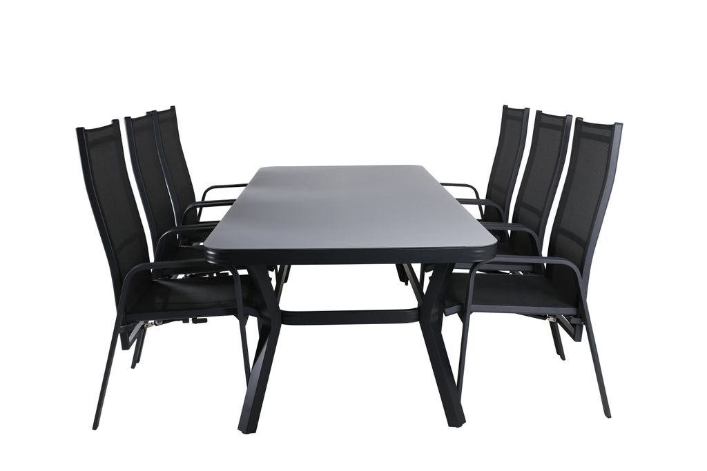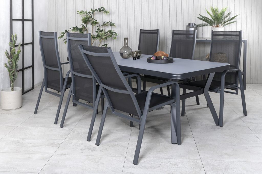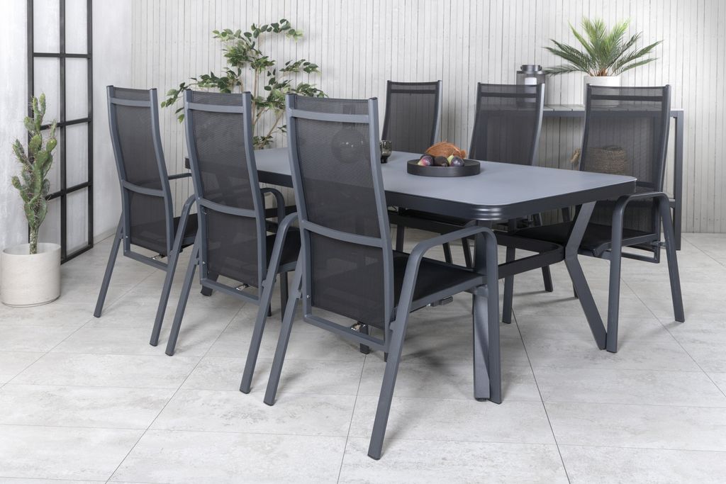 Venture Home Virya Rektangulär Matgrupp är en perfekt kombination av modern design och komfort. Denna matgrupp passar utmärkt för varma sommarkvällar med familj och vänner. Matbordet har en stilren, rektangulär design som förenar funktion med estetik. Stolarna, som ingår i Copacabana-serien, är robusta och väl tilltagna, vilket gör dem idealiska för långa, avkopplande middagar.
