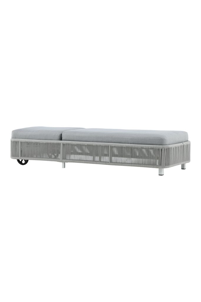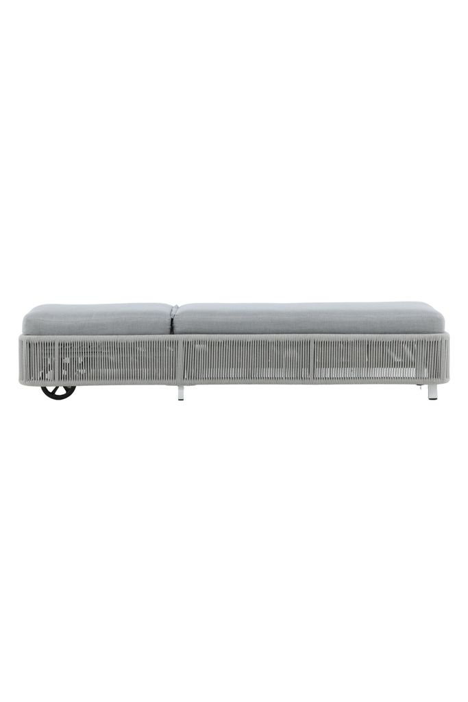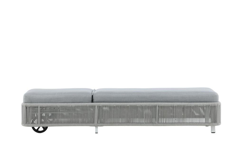 Elegant solsäng i grått med hjul för enkel förflyttning. Njut av bekväma stunder i solen med denna stilrena design.