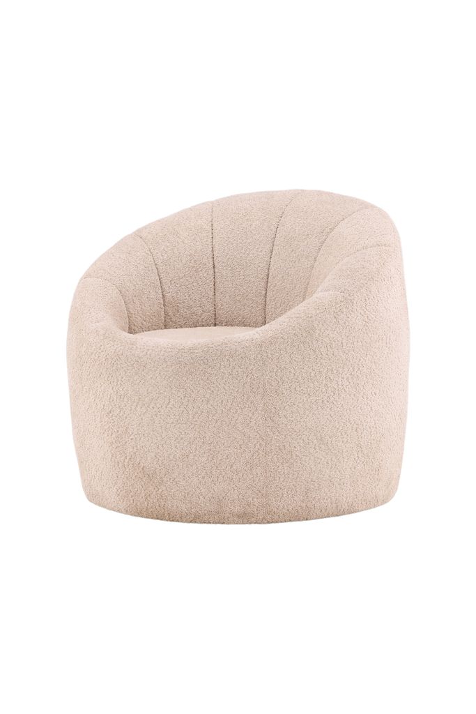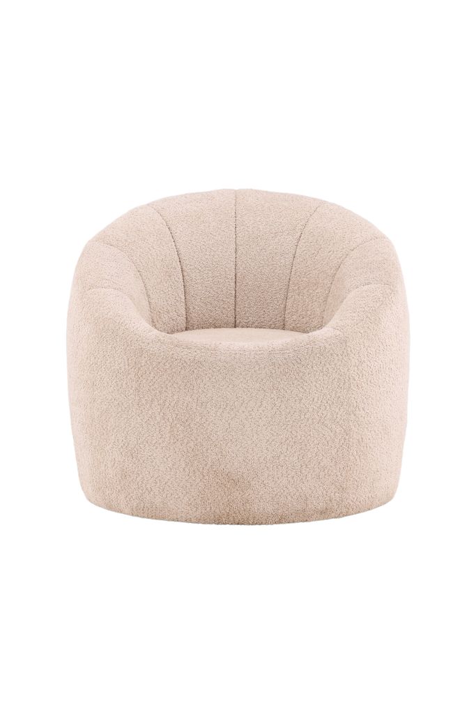 Elegant och mysig fåtölj i beige boucletyg, perfekt för stilfull inredning och komfort.
