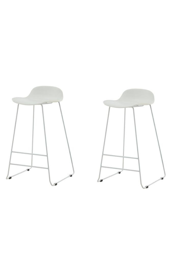 Stilren barstol i skandinavisk design med vit sits och metallställning, perfekt för din barskänk.