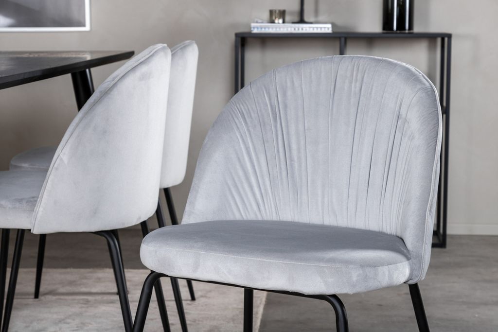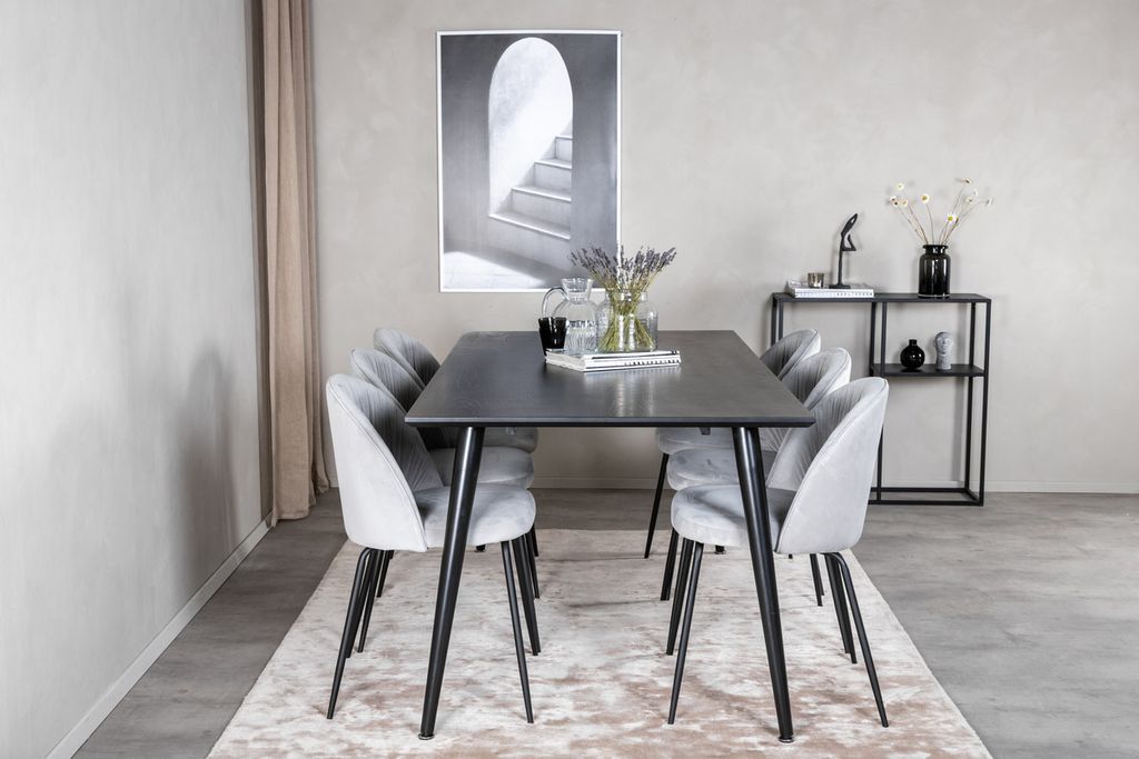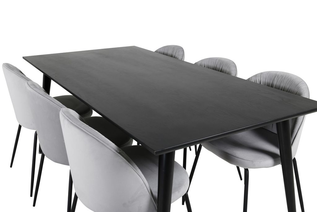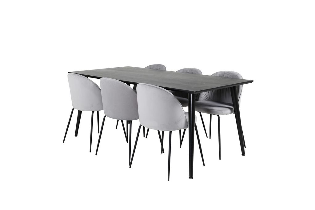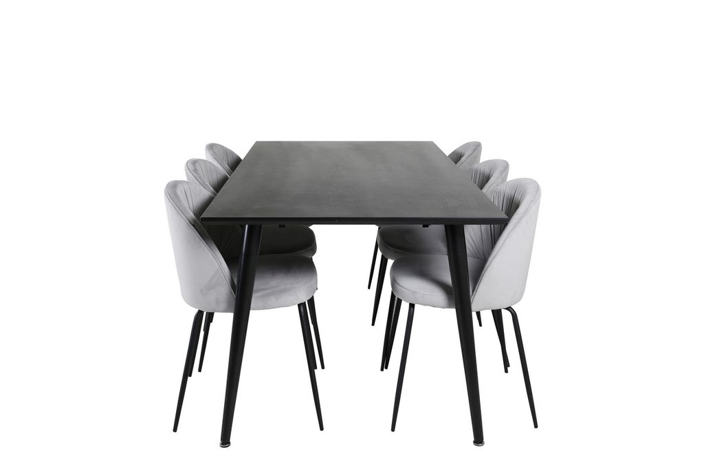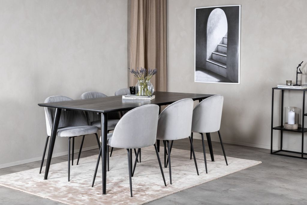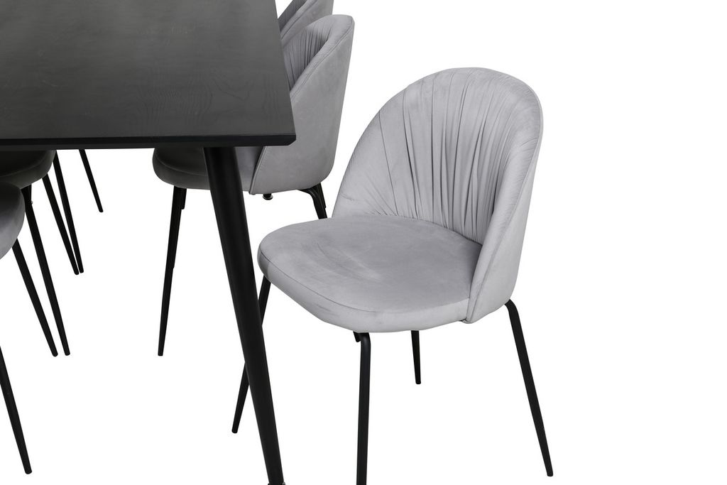 Venture Home Wrinkles & Dipp 6 st Matstolar Grå + Rektangulärt Matbord 180 x 90 Svart