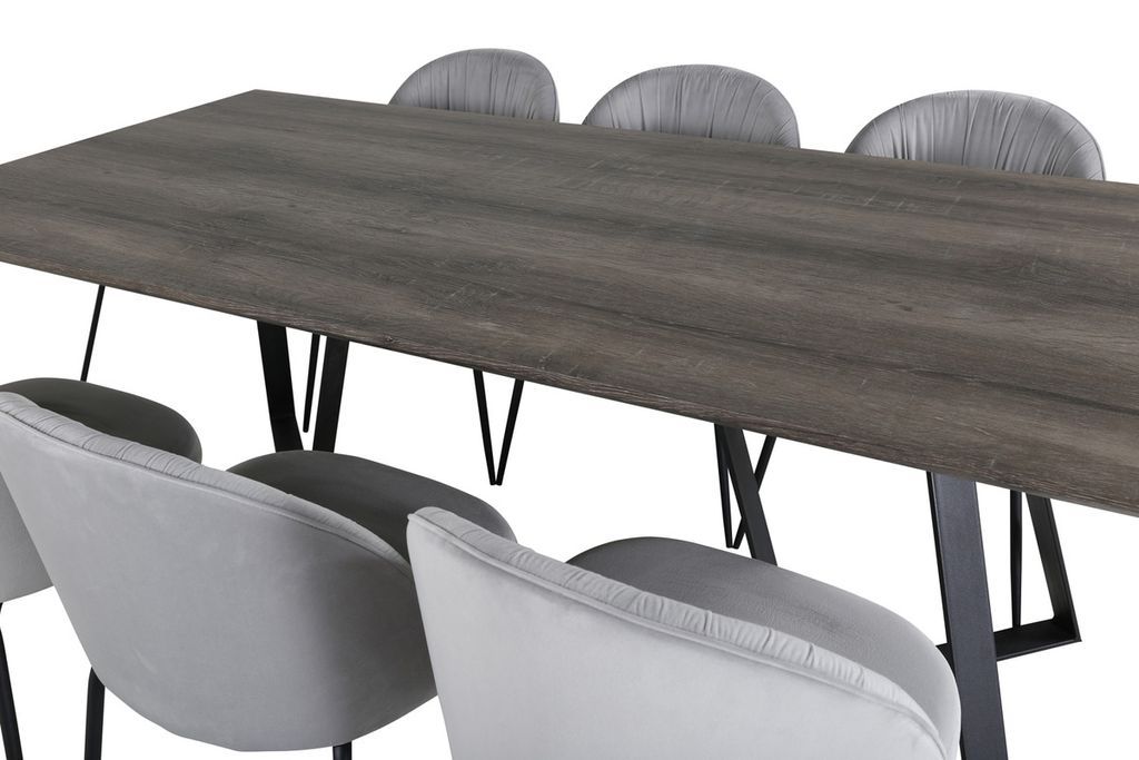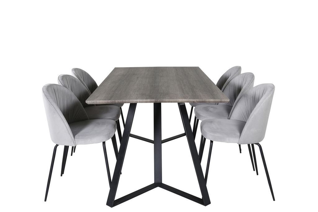 Venture Home Wrinkles & Marina 6 st Matstolar Grå + Rektangulärt Matbord 180 x 90 Natur