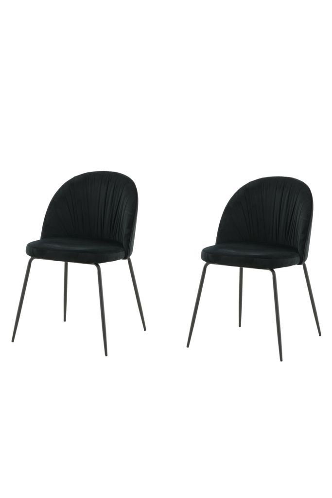Upptäck Venture Home Wrinkles Matstol 2-pack – en kombination av modern design och komfort. Dessa stolar har en elegant helklädd design som kombinerar stil med funktionalitet. Det rynkade svarta sammetstyget ger en lyxig känsla, medan de svart pulverlackerade metallbenen ger stabilitet och en modern touch.