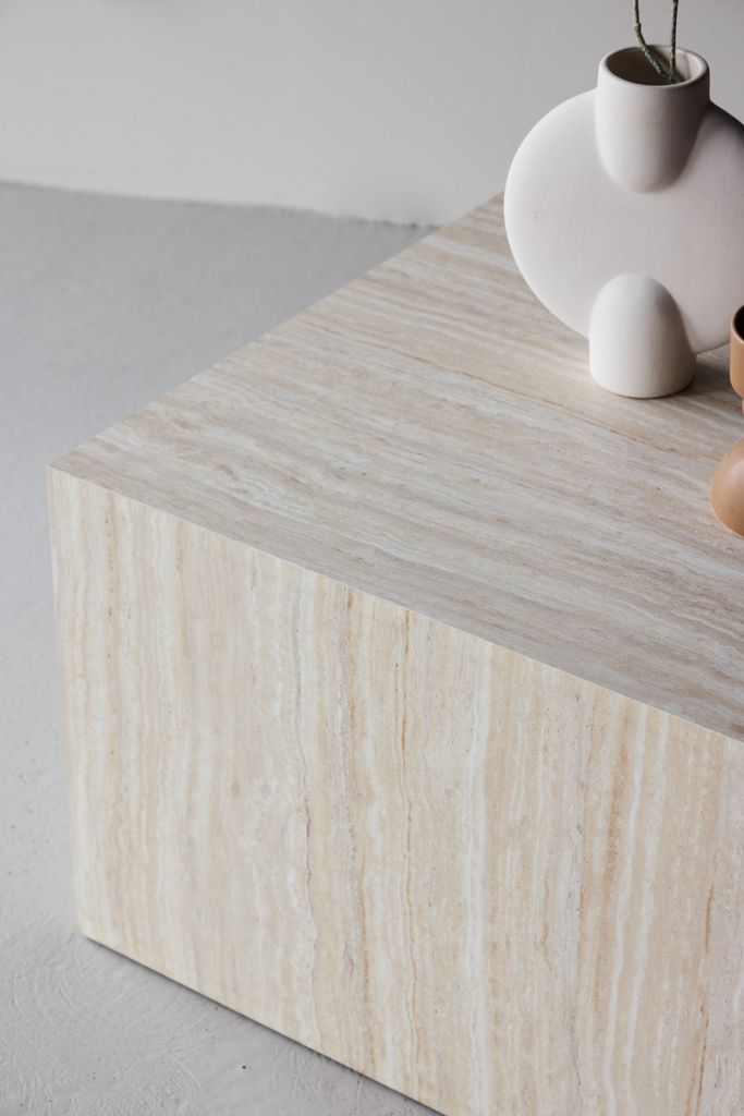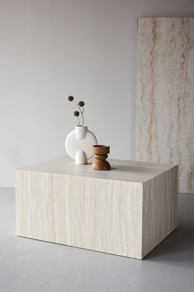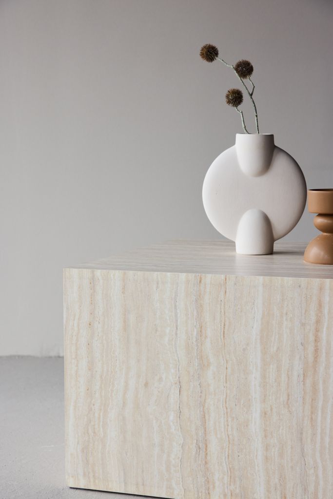 Elegant soffbord i beige med stenlook, kombinerar modern design och naturlig estetik för att förhöja ditt vardagsrum.