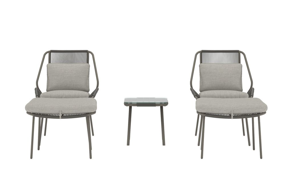 Zakynthos Lounge Set i brun nyans är en stilren och bekväm möbelgrupp som bjuder in till avkoppling. Setet består av två fåtöljer med mjuka dynor, två matchande fotpallar samt ett litet bord med glasskiva – perfekt för att skapa en harmonisk loungemiljö på altanen, i trädgården eller vid poolen. Den bruna stommen tillsammans med de mjuka dynorna ger en varm och elegant känsla som enkelt smälter in i olika utomhusmiljöer. Zakynthos Lounge Set är det perfekta valet för dig som vill kombinera komfort med modern design.