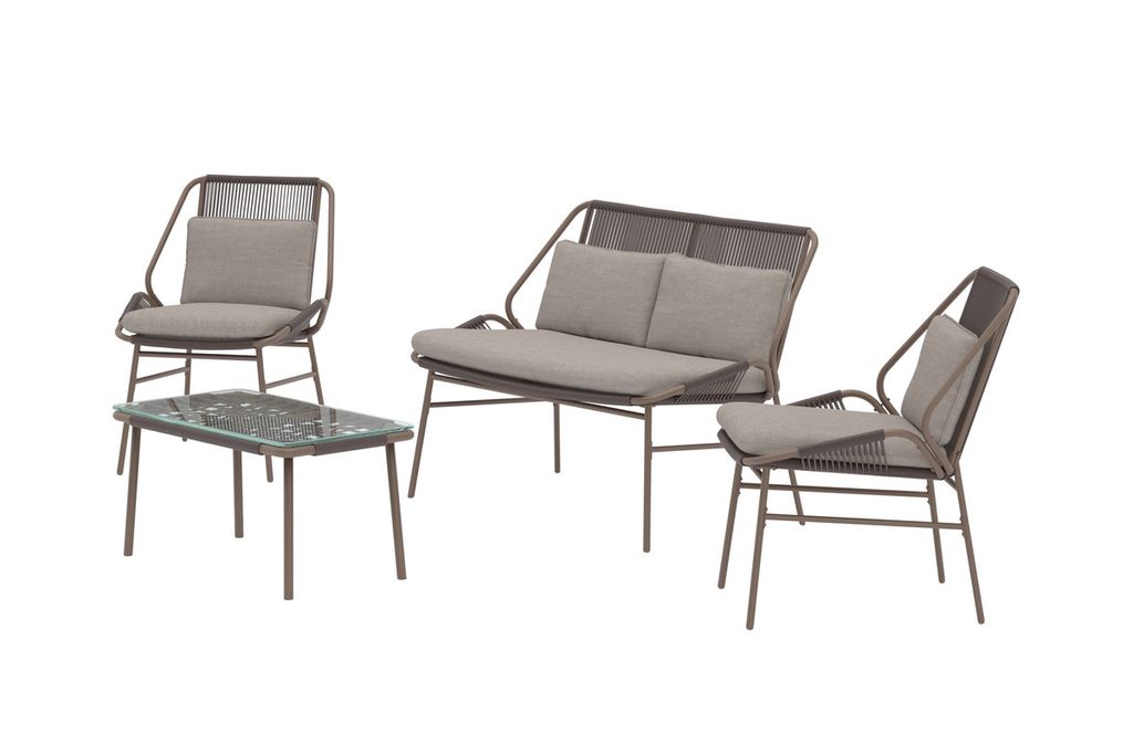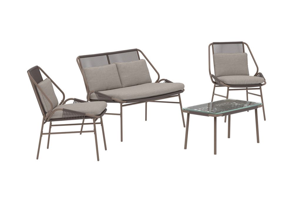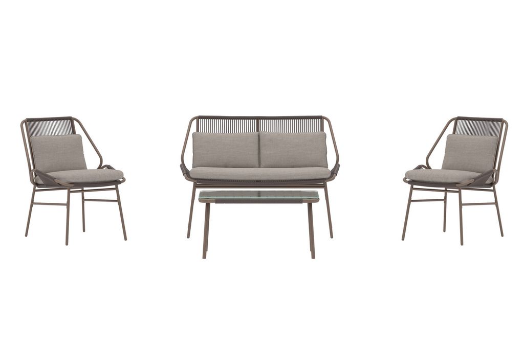 Zakynthos soffgrupp med brun stomme och beige dynor är en stilfull och bekväm möbelgrupp som förvandlar uteplatsen till en inbjudande oas. Gruppen består av en soffa, två fåtöljer och ett matchande bord med glasskiva – allt i en modern design som kombinerar elegans med praktisk funktion. De mjuka dynorna i beige skapar en varm kontrast mot den bruna stommen och ger en harmonisk känsla som passar perfekt för både avslappning och umgänge. Zakynthos soffgrupp är det självklara valet för dig som vill förena komfort med tidlös design.