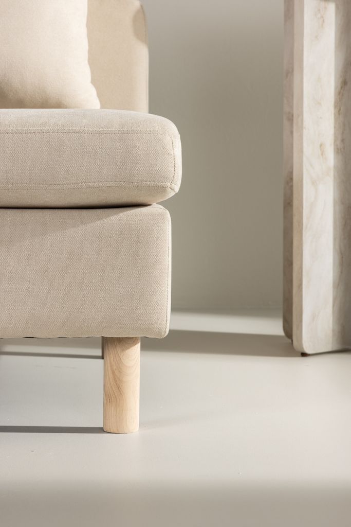 Med sitt generösa ryggstöd och den medföljande stora kudden inbjuder denna fåtölj till avkoppling och komfort. Sätt dig ner och låt vardagens stress försvinna medan du omfamnas av Zero fåtöljs lyxiga mjukhet. De ljusa träbenen och den behagliga färgen bidrar till en lugnande och harmonisk atmosfär i ditt hem.
