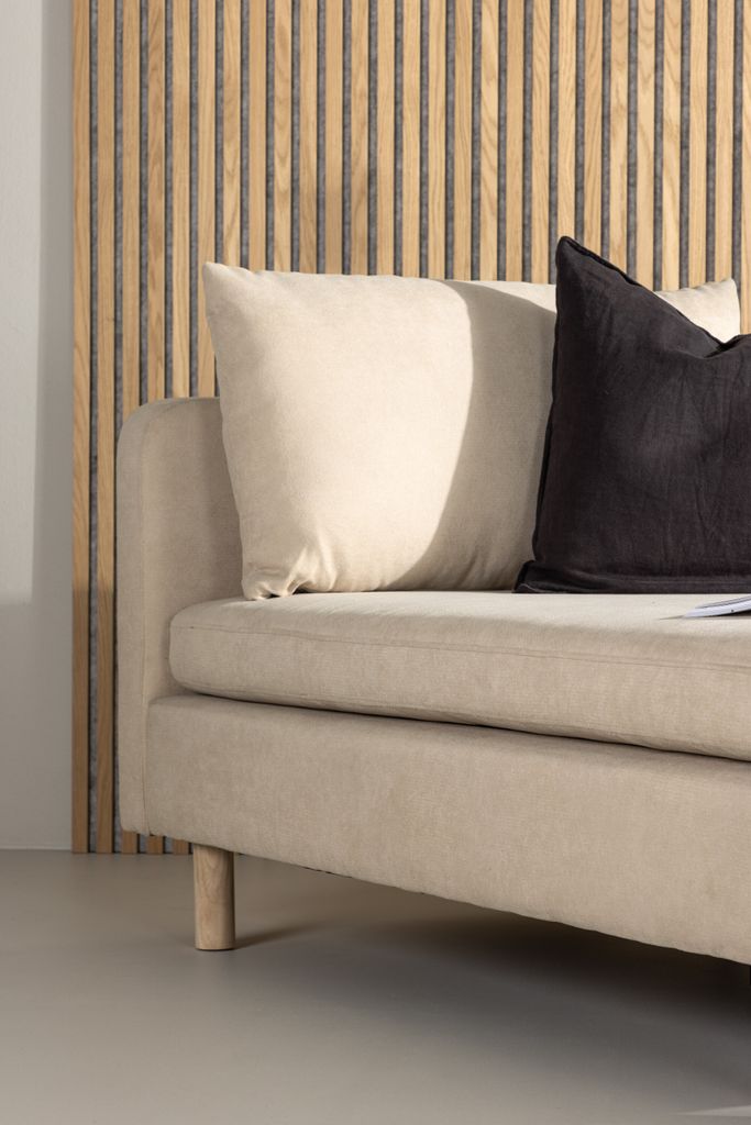 Elegant och bekväm dagbädd i beige polyester med träben för ultimat avslappning och stil.