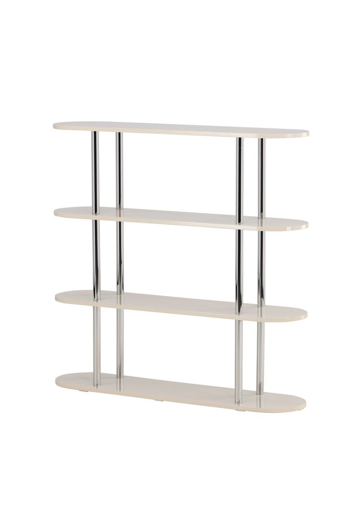 Upplev kombinationen av stil och funktion med Venture Home Zino hylla. Denna golvstående hylla har en modern design med eleganta silvriga ben och fyra rejäla hyllplan i vitlackerad MDF. Med sina mått på 30 x 116 x 120 cm erbjuder Zino gott om utrymme för att visa upp dina favoritböcker, dekorationer eller personliga föremål.
