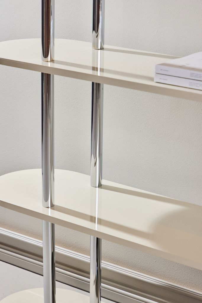 Den öppna konstruktionen hjälper till att hålla ordning samtidigt som den bidrar till en luftig atmosfär i rummet. Hyllans stilrena utseende gör den lika passande i både vardagsrum och kontor.