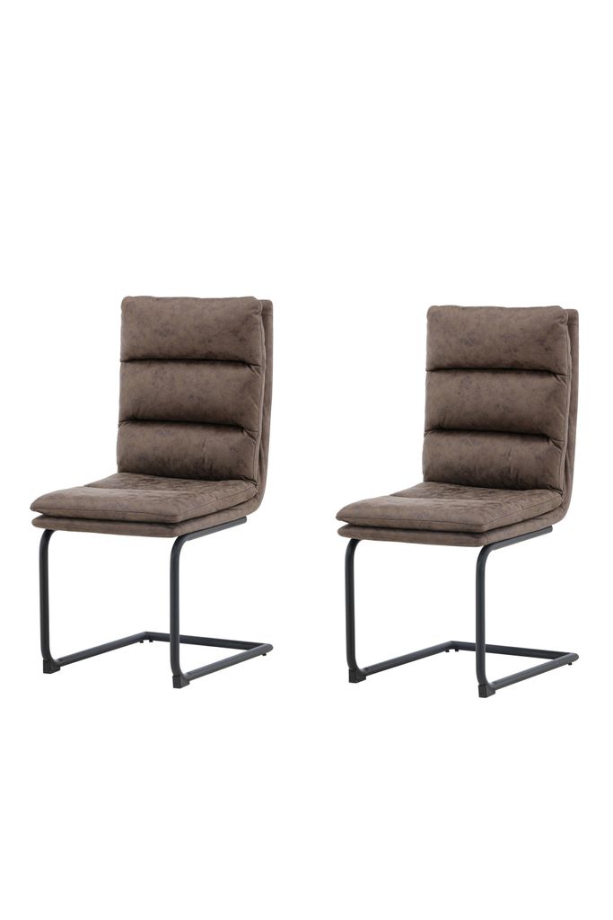 Venture Home Zizo matstol är en elegant och bekväm stol som ger ditt kök eller matsal en lyxig känsla. Stolen är klädd i mörkbrunt mikrofiber, vilket ger en rustik look och är lätt att underhålla. Den raka nordiska designen kompletteras med stilrena, svarta järnben som ger ett stabilt och hållbart intryck.
