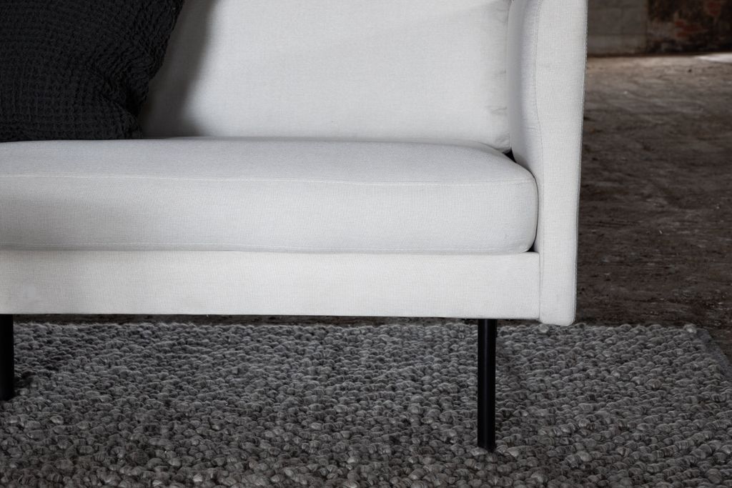 Skötselråd: För att bevara soffans skick, undvik direkt solljus och impregnera textilen med textilspray innan användning. Vid fläckar, sug upp varsamt med en trasa för att förhindra permanenta märken.