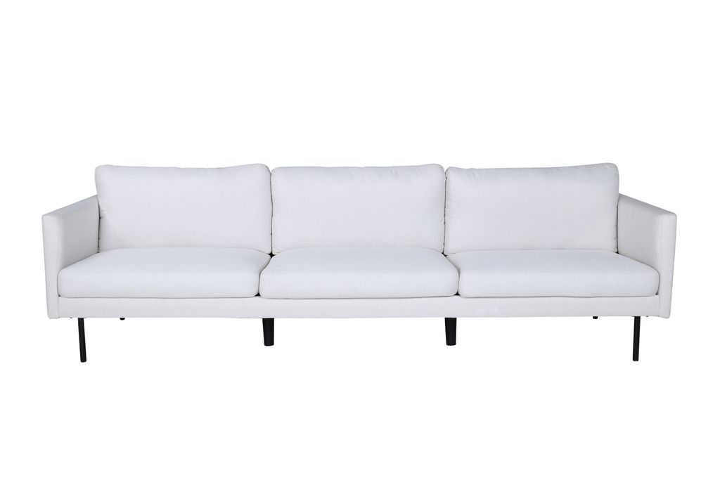 Lyxig och modern 3-sits soffa i ljusbeige med smala svarta metallben. Perfekt kombination av stil och komfort.