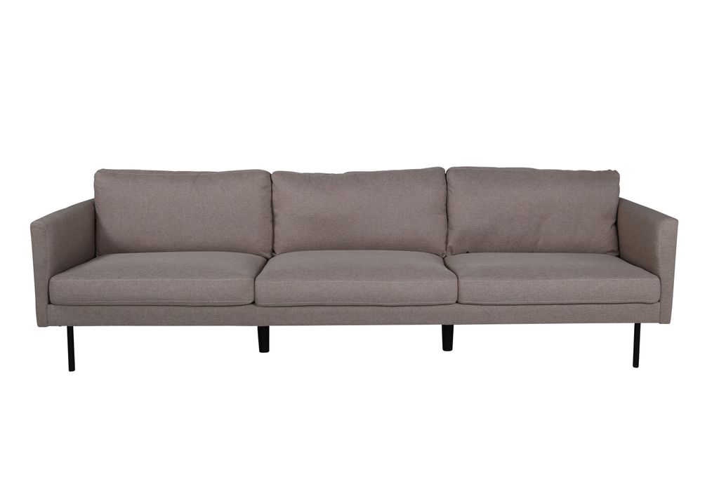 Zoom 3-sitssoffa kombinerar stil och komfort med elegant beige/brun färg och svarta metallben.