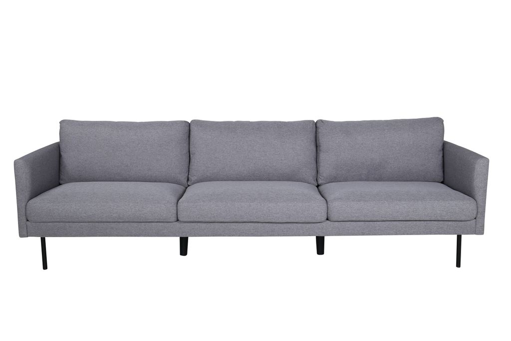 Upplev stil och komfort med Zoom 3-sitssoffa i tidlös grå nyans och slanka svarta metallben.