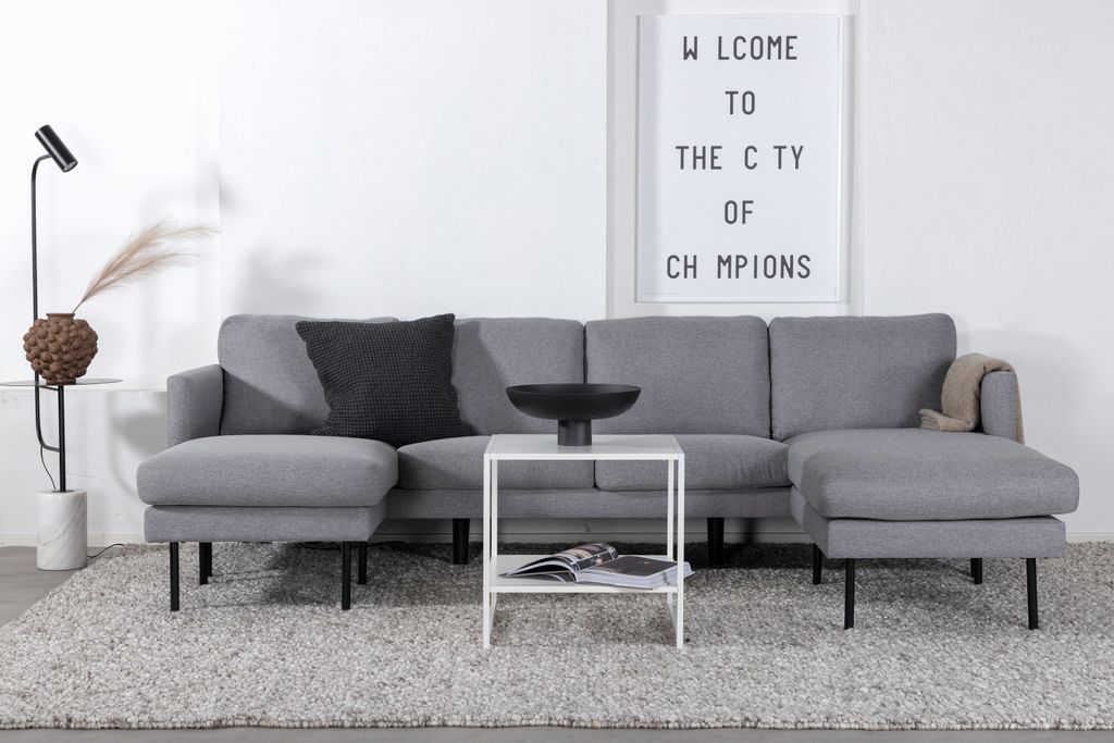 Skapa ett inbjudande vardagsrum med den grå Zoom divansoffan. Med två divaner och stilrena metallben blir den snabbt en favorit.