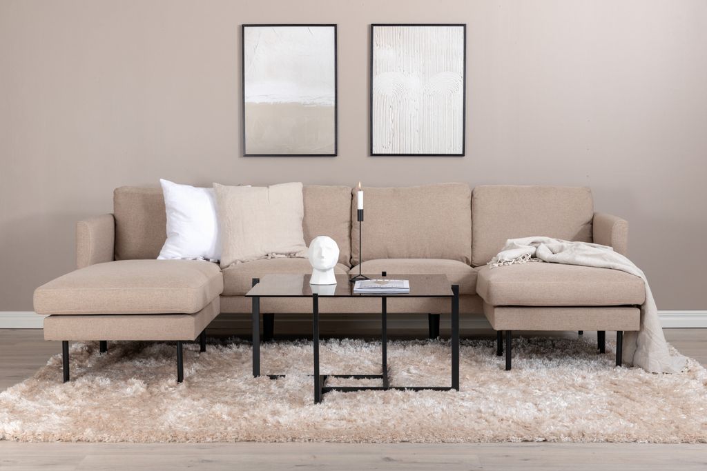 Skapa ett inbjudande blickfång i vardagsrummet med Venture Home Zoom Divansoffa, en perfekt kombination av stil och komfort. Med sin läckra brun/beige kulör i mjukt tyg och charmiga formspråk, blir denna soffa snabbt en favorit. Designen är genomtänkt med två divaner samt raka nordiska former och stilrena smala ben i svart metall.