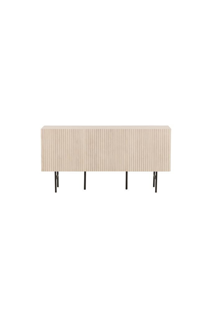 Stilsäkert avlastningsskåp i skandinavisk design med ribbade luckor och två hyllplan för dold förvaring.