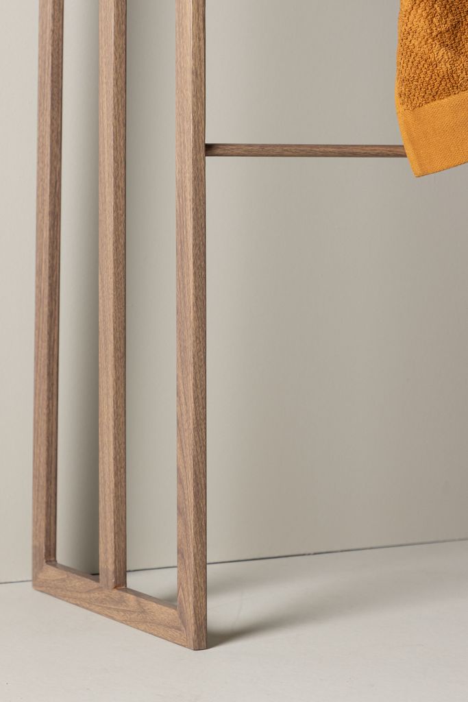 Hälsa på Drammen, din nya bästa vän när det gäller att hålla ordning på ditt hem med elegans och enkelhet. Tillverkad i slitstarkt stål och förföriskt klädd i en varm moccafärg, är Drammen inte bara en praktisk klädhängare utan även en snygg inredningsdetalj.