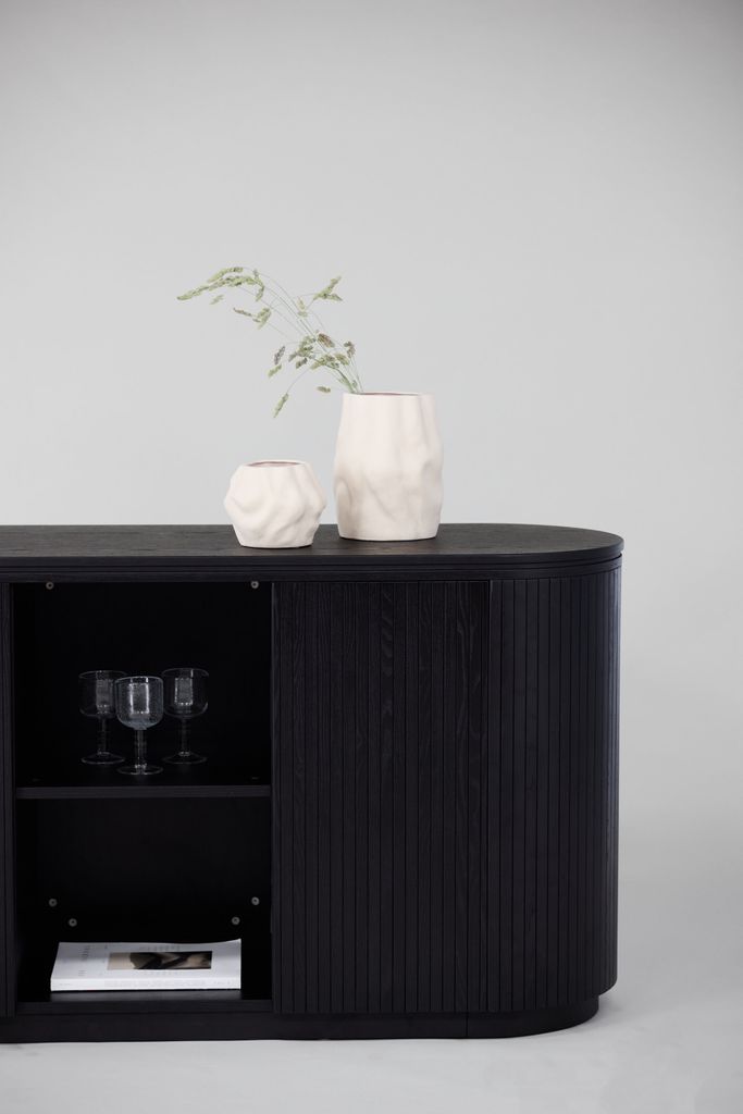 Upptäck elegansen i Vind Collection Fjällbacka Förvaring, ett ovalt avlastningsskåp som kombinerar både synlig och dold förvaring med stil. Tillverkat i högkvalitativ svart ek med en mjuk faneryta, erbjuder detta skåp en perfekt balans mellan funktion och design. Den skandinaviska stilen präglas av rena linjer och en tidlös estetik som drar blickarna till sig.