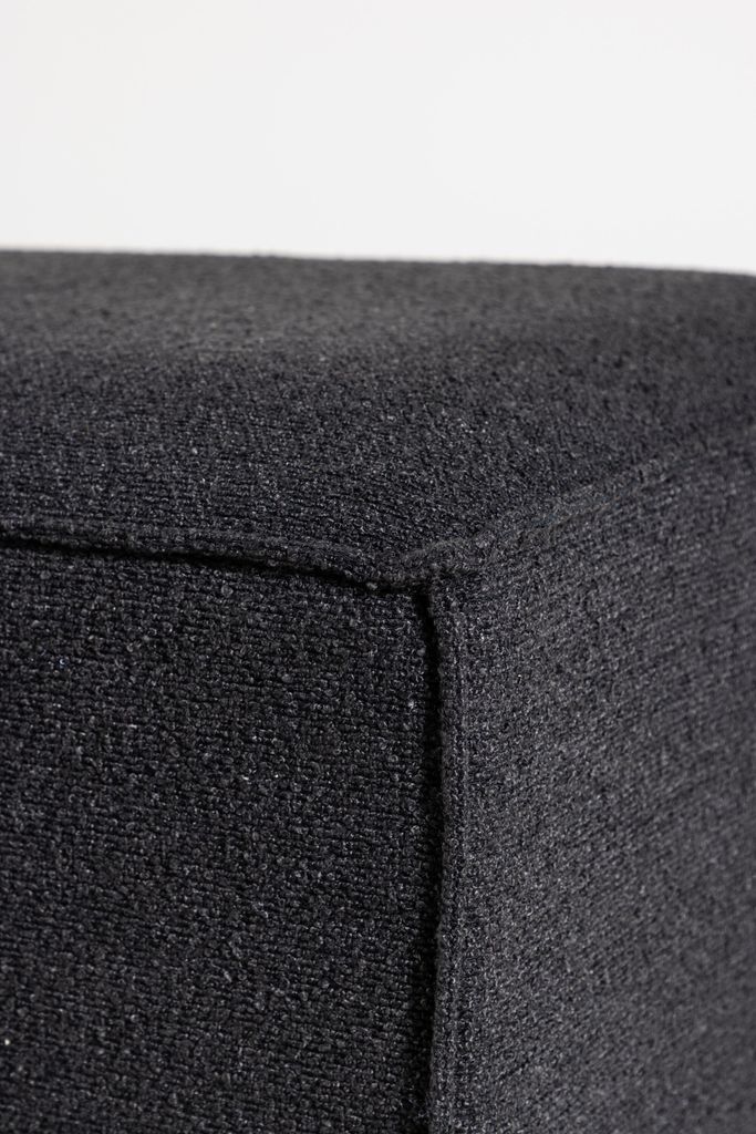 Elegant och trendriktig sittpuff i svart bouclé-tyg. Perfekt som extra sittplats eller fotpall.