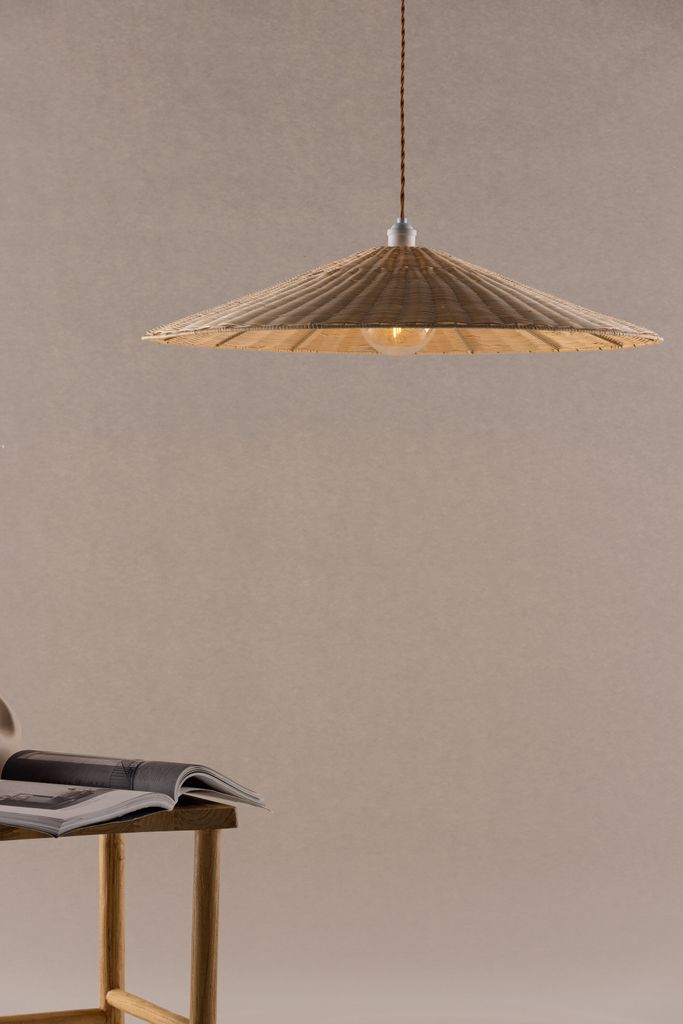 Lampans runda form och eleganta design gör den till ett vackert blickfång i vilket rum som helst. Den utsökt flätade rottingen skapar ett intressant ljusspel när lampan är tänd, vilket bidrar till en varm och inbjudande atmosfär.