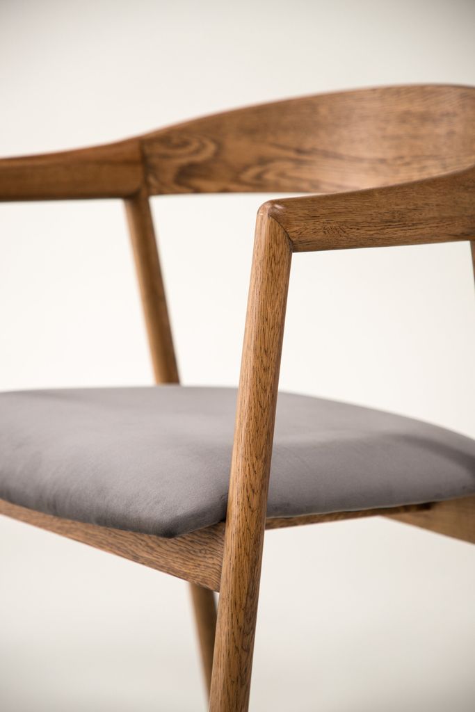 - Integrerade armstöd ger extra komfort, medan de lätt utsvängda benen i ekträ ger stabilitet och stil.