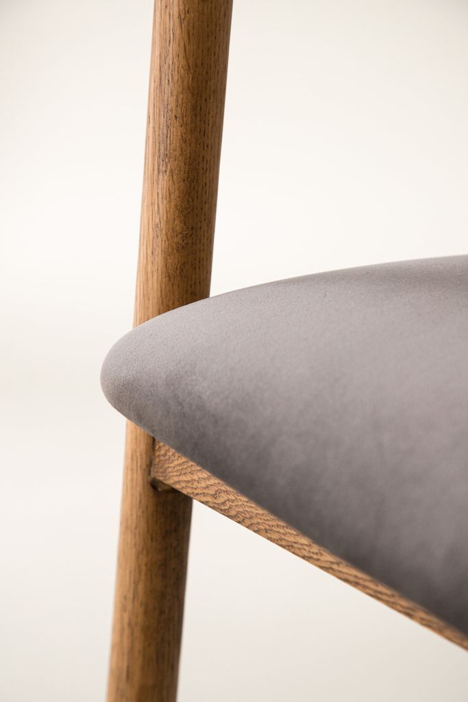 Skandinavisk design med ekfärgad finish och grå sammetssits. Perfekt för moderna hem.