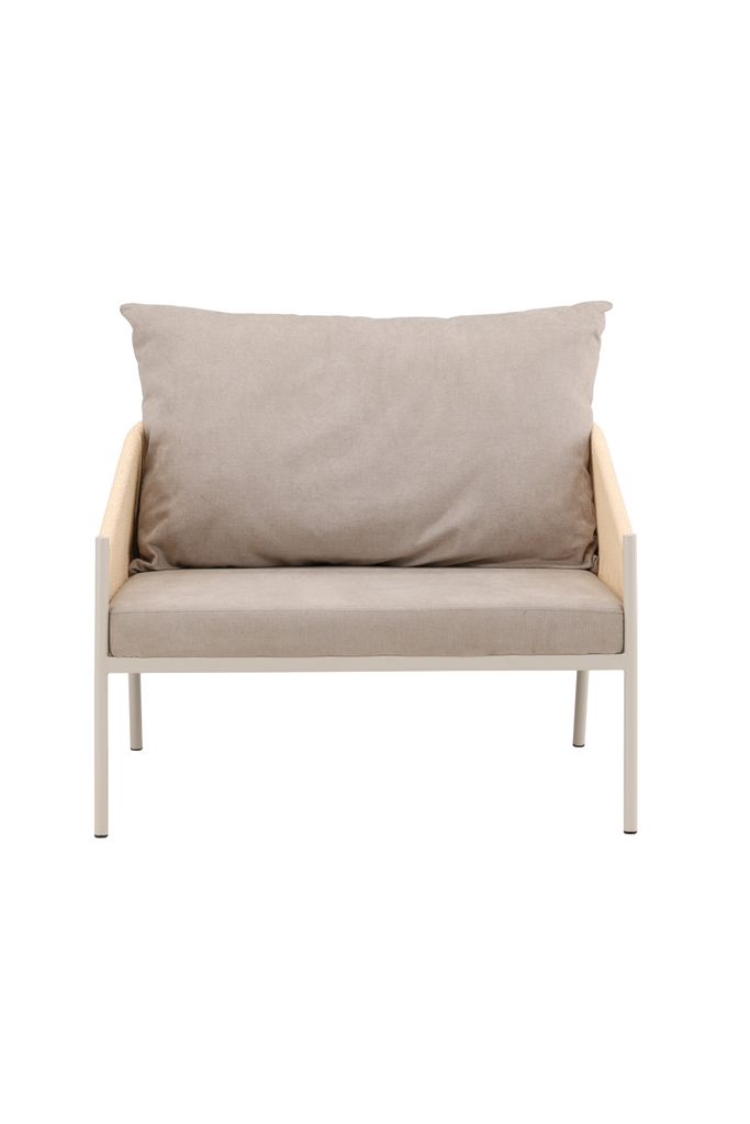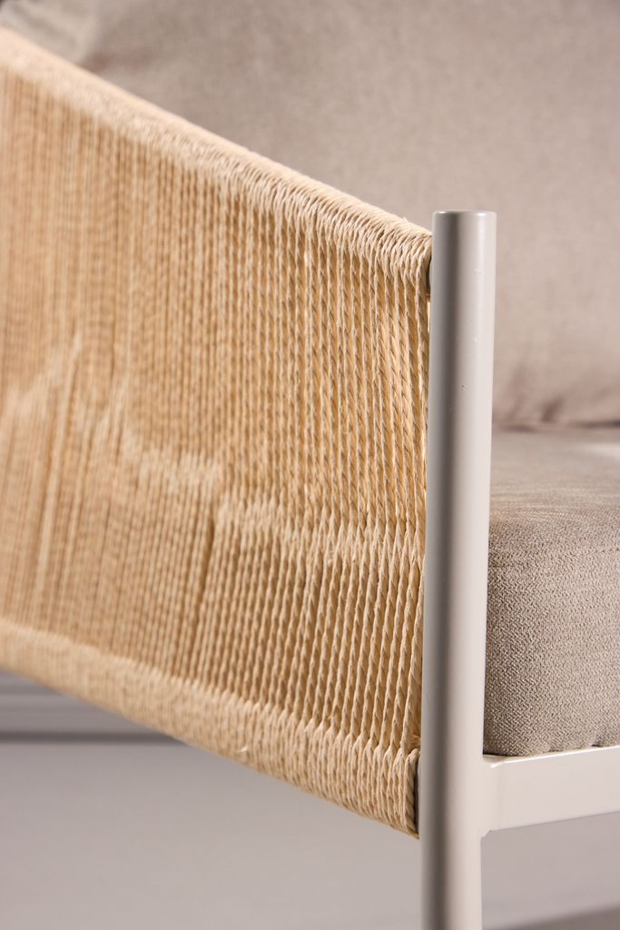 Louie är tillverkad med högkvalitativa material: foam, polyester linne, polyester rope, och stål. Armstöden är stilfullt flätade med ett naturligt intryck som ger en extra dimension till designen.