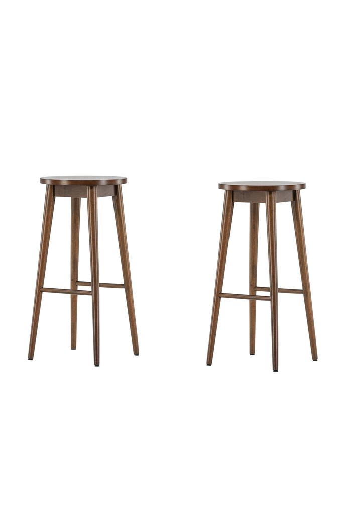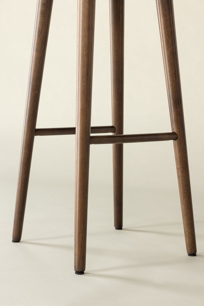 Elegant barstol i gummiträ med moccafärg. Bekväm sitthöjd och praktiskt fotstöd för avslappnade stunder.