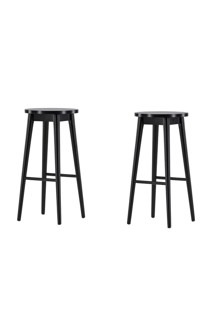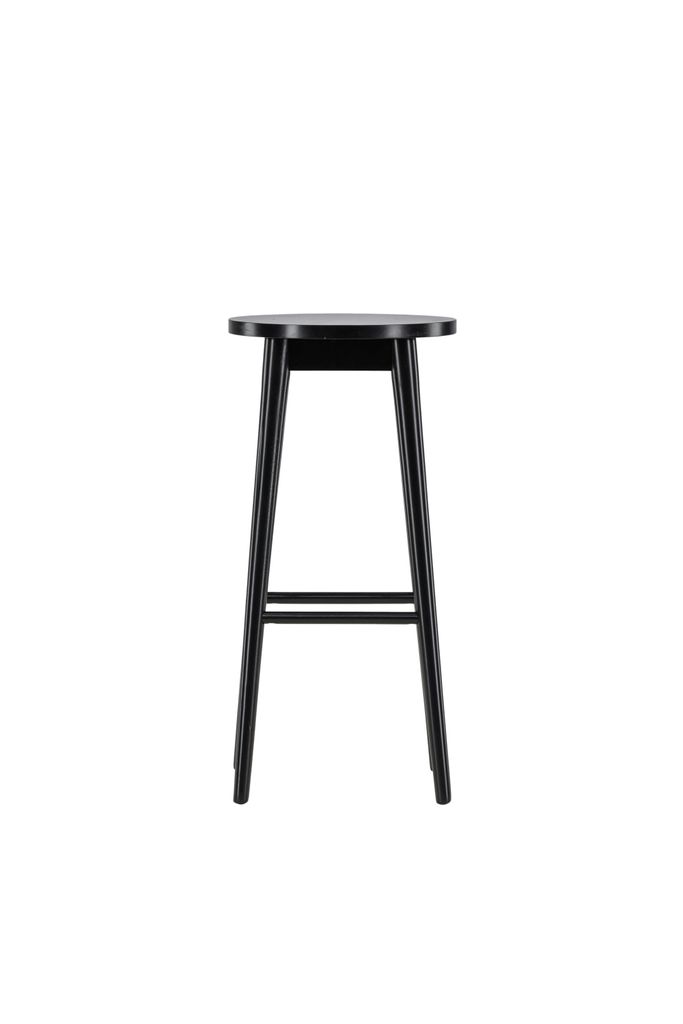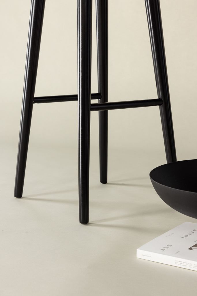 Modern och stilren barstol i svart gummiträ med ergonomiskt fotstöd för komfort och hållbarhet.