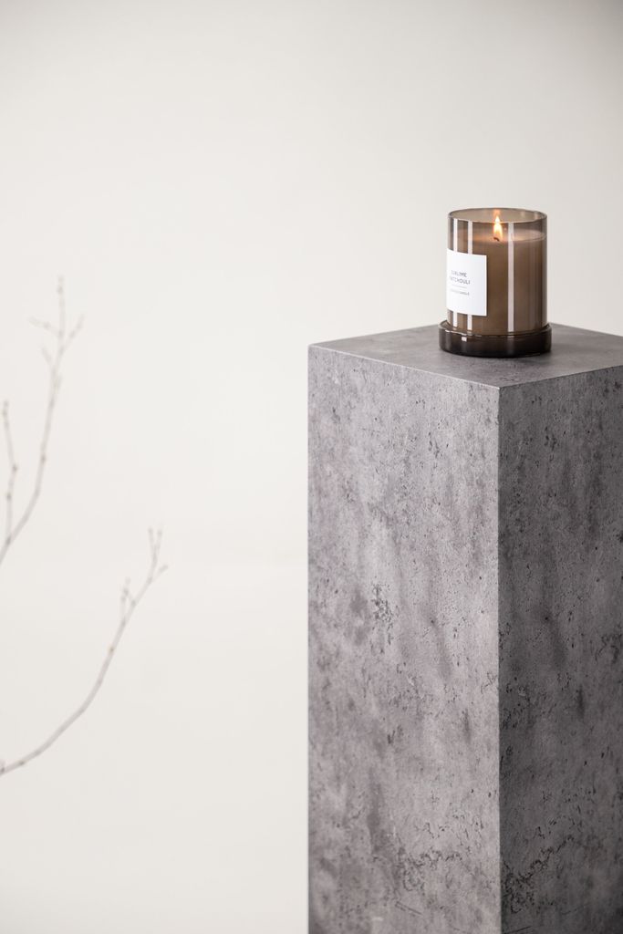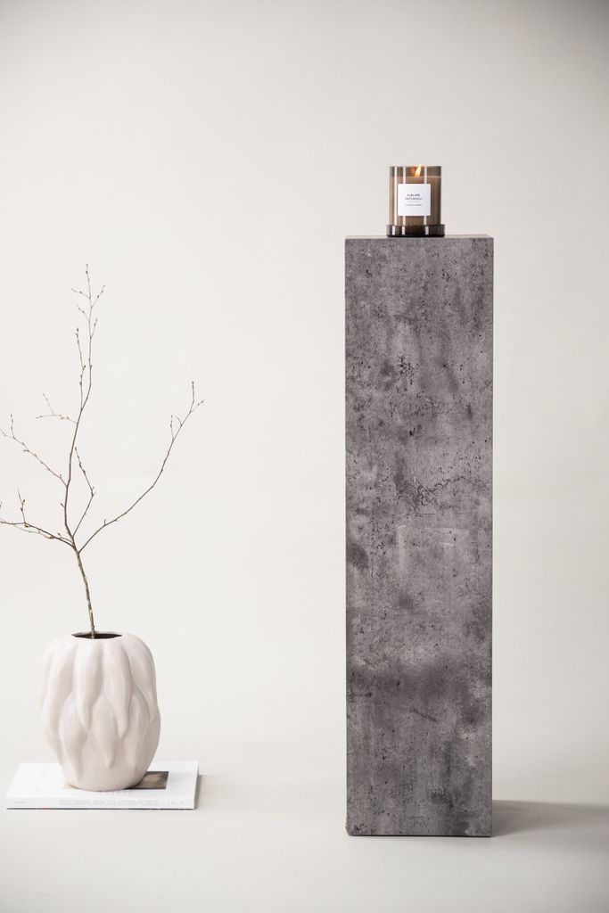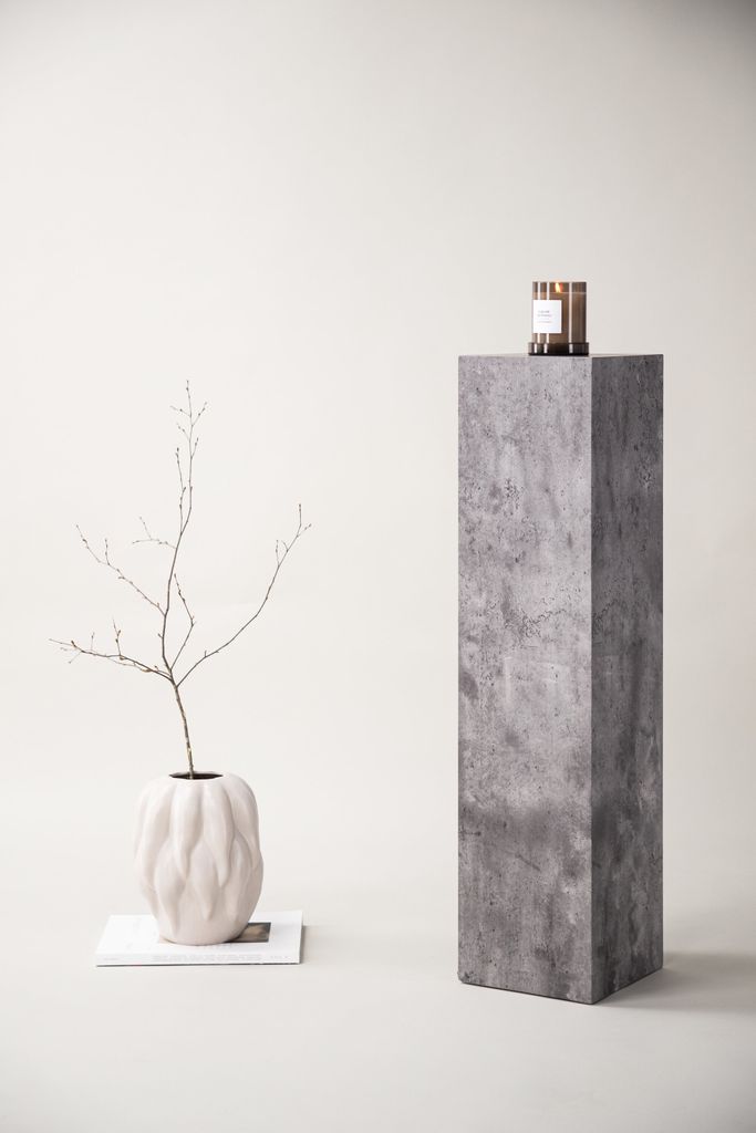 Elegant piedestal i grå betongliknande finish. Perfekt för växter, lampor eller dekorationer. Finns i två storlekar.