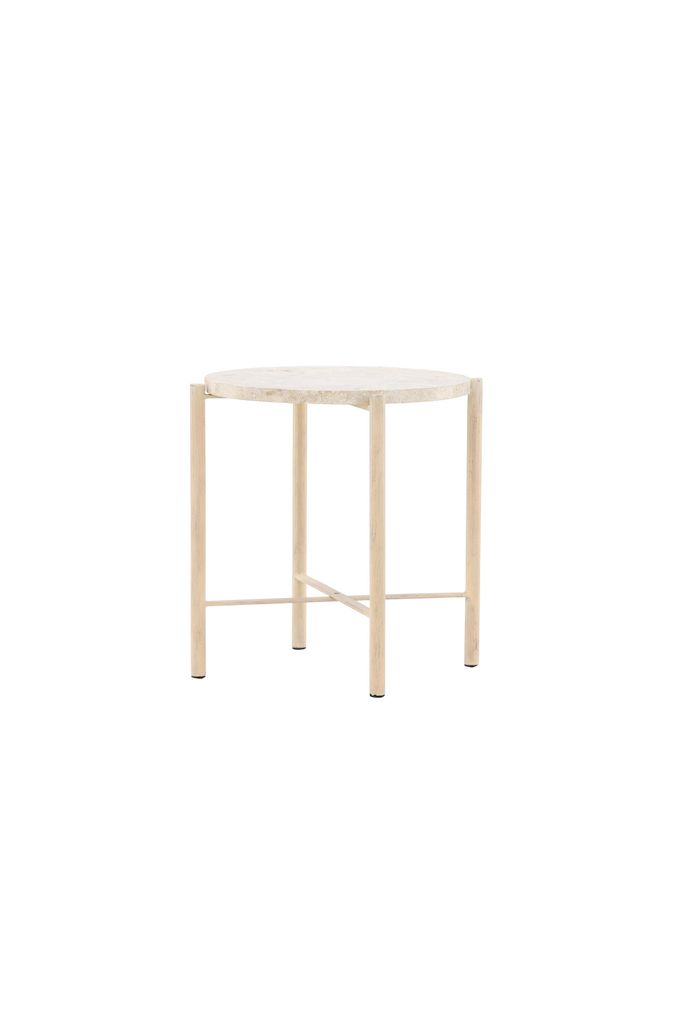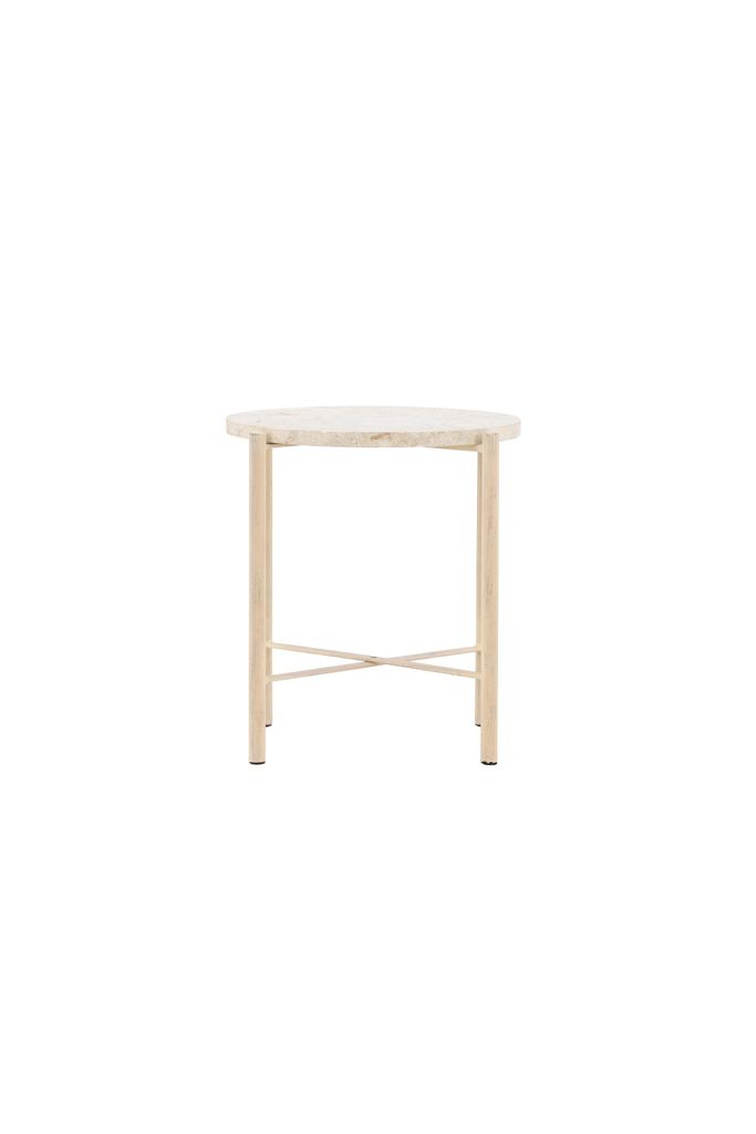 Sandhamn Soffbord i beige, 40 cm i diameter. Elegant design i Mactan-sten och järn för stil och funktion.