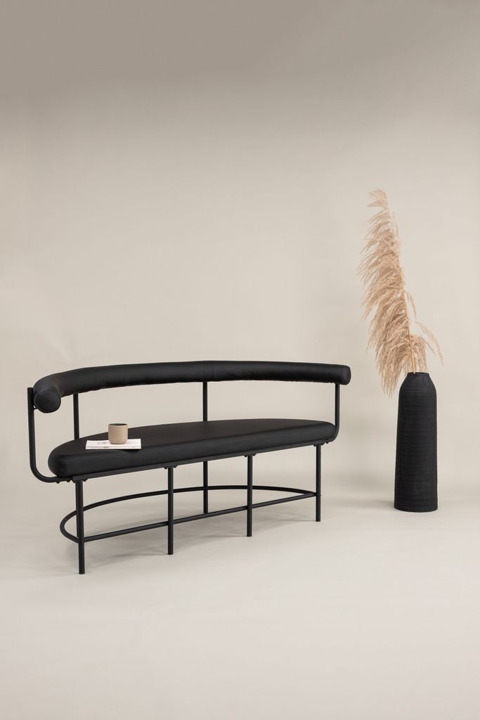 Upptäck elegansen i Vind Collection Stallhagen x Josefin Lustig Bänk Soffa, där skandinavisk minimalism möter modern design. Den halvmåneformade ryggstödet är stilfullt rundat, vilket ger både komfort och estetik. Den svarta PU-klädseln är både hållbar och lätt att underhålla, vilket gör den ideal för vardagsbruk.